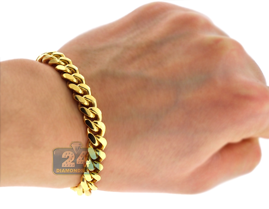 Yellow Gold 925 Silver Miami Cuban Link Mens Bracelet 8mm 9